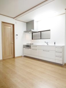 | 外構は植栽を撤去して、階段の段差を緩やかに取り、外部てすりを設置することで行き来をしやすくしました。 | システムキッチンはPanasonicのリビングステーションNewSクラスを設置しました。以前はキッチン前に大きな出っ張りがあった為、窓の開け閉めも大変でしたが、壁を撤去し梁を補強することによってスッキリとしました。 |