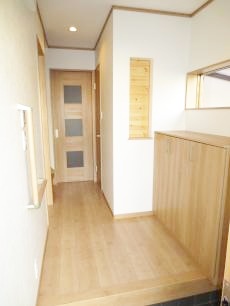 | トイレはTOTOの『ZJ』を設置しました。トイレの奥行きを若干広げ、将来のためにてすりも設置しました。 | 玄関部分です。内装が明るくなり雰囲気が変わりました。少し飾りが置けるようにニッチを作りました。 |