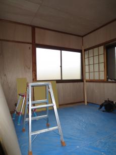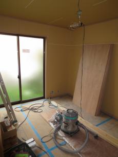 | 2階和室です。こちらはジュラク部分にクロスが貼れるように、下地をしていきます。 |