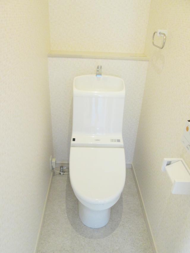 | 天井・壁・床・便器を全て白にしたため、冷たい印象になりがちですが、照明器具の色で温かみのある空間へ仕上げました。便器はTOTOの『ウォシュレット一体型便器ZJ』を使用しました。 | 見た目だけでなく、断熱性や床の湿気対策など機能面も重視しました。仕上がりにはS様も大変満足してくださいました。今後も末永いおつき合いを宜しくお願いいたします。 |