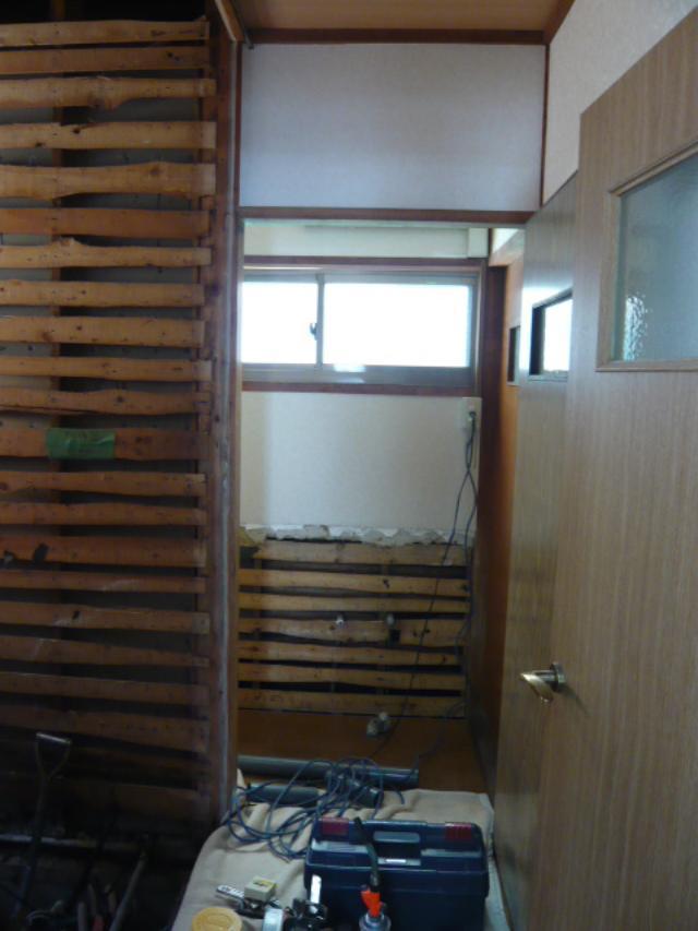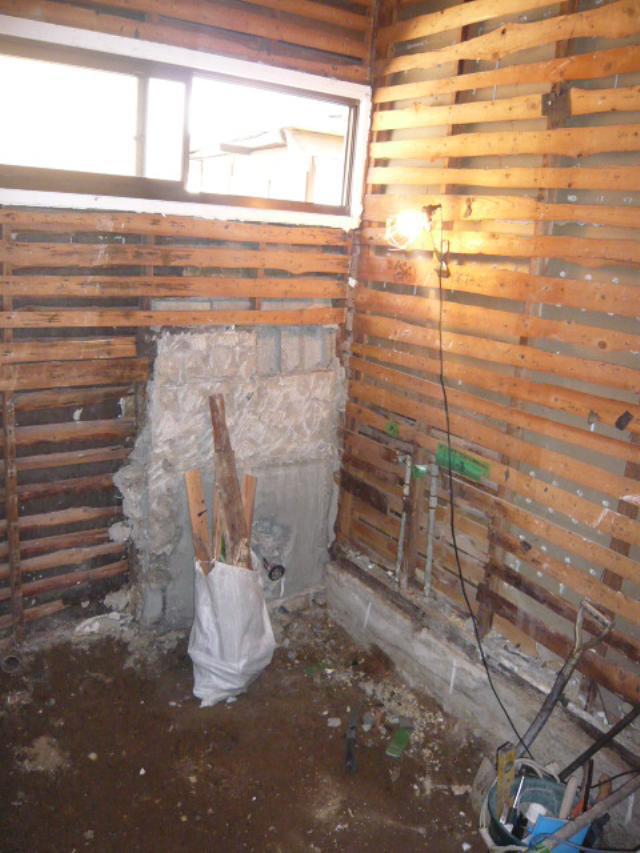| 浴室です。解体工事が終わりました。これから給排水工事をして土間を打設していきます。 |