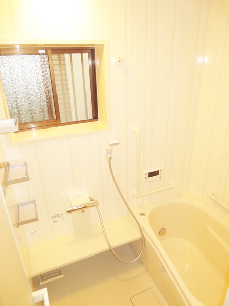 | 施工後の浴室です。TOTOの『サザナ』1216サイズを採用しました。壁のパネルは飽きのこないハープベージュ柄を選びました。 |