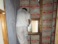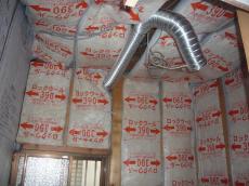 壁と天井にも断熱材を入れて温かい浴室を造っていきます。 |