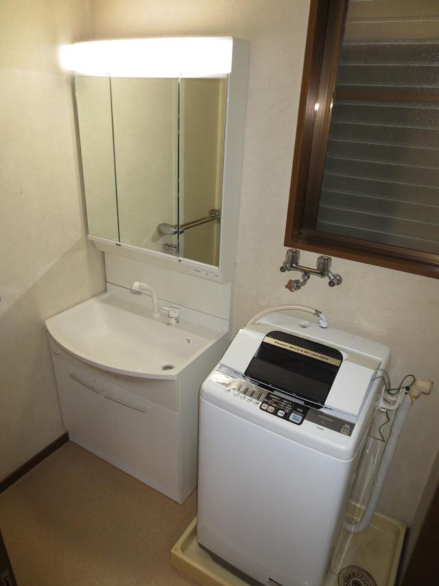 | 既存の浴室です。ユニットバスですが壁・床共に仕上げがタイルなのでお掃除が大変とのことでした。 | 既存の洗面所です。きれいにお使いでしたが、ユニットバスリフォームを機会に内装工事を決断されました。 |