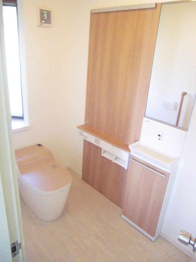 | トイレは、パナソニック製全自動おそうじトイレ「アラウーノ」、壁面には脱臭や輻射熱効果のある機能パネルを設置。 |