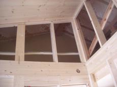 | 上棟です。クレーンで必要な部材を上にあげます。 | 上棟です。1階部分から3階の屋根の骨組みまでいっきに造っていきます。 | 洋室です。腰板を貼り、上半分はクロスで仕上げていきます。 |
