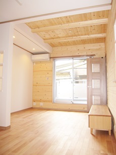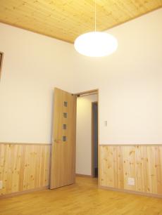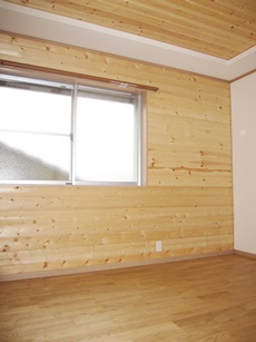| 洋室です。パイン羽目板を腰貼りしています。 | 洋室です。こちらのお部屋には壁の一面だけにログパインを貼りました。 | サーファーズハウスをイメージして白を基調としたスタイリッシュで洗練された外観に仕上げました。 |
