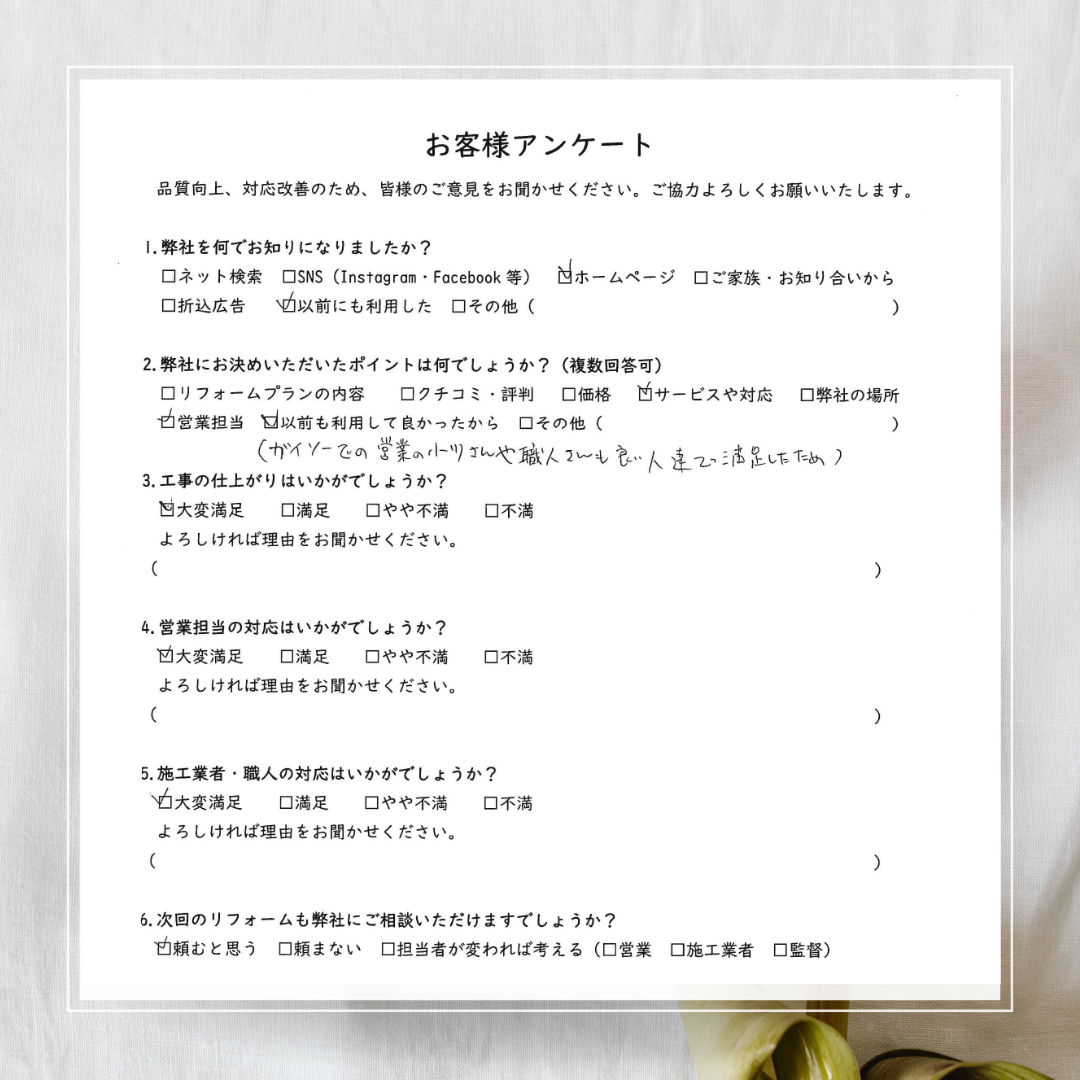 営業・職人の方々には丁寧な作業をしていただき有難うございました。
