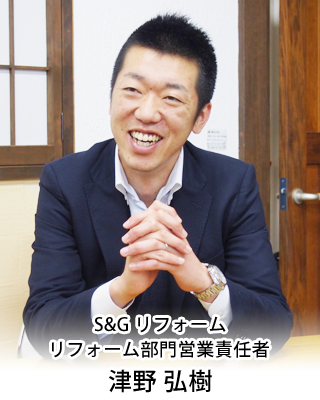 こんにちは!S&Gリフォームのリフォーム部門営業責任者の津野弘樹です。